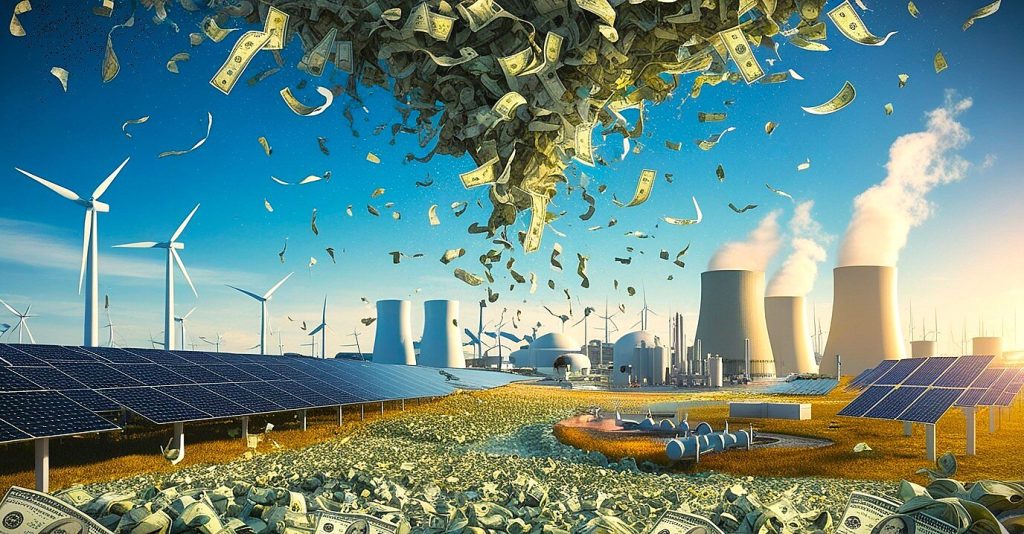 AI image of cash raining on energy projects