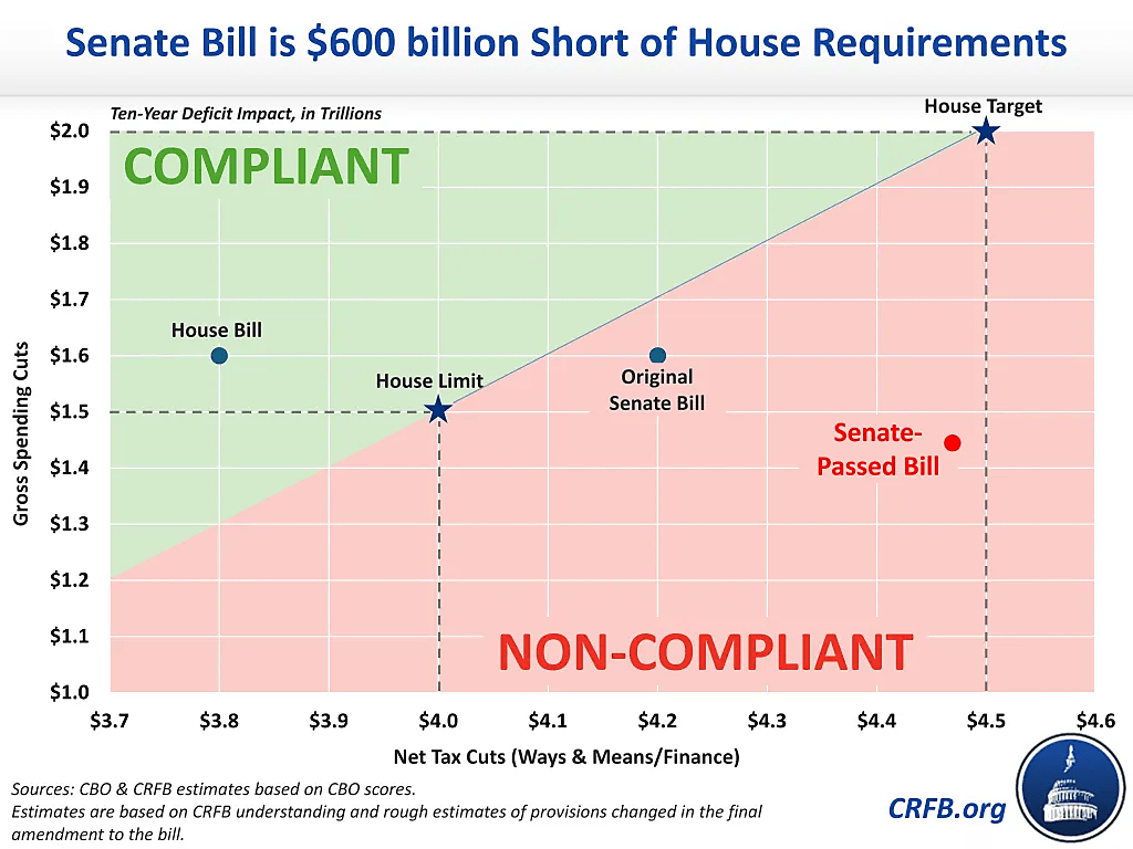 Graph displaying how Senate bill is noncompliant with House budget resolution
