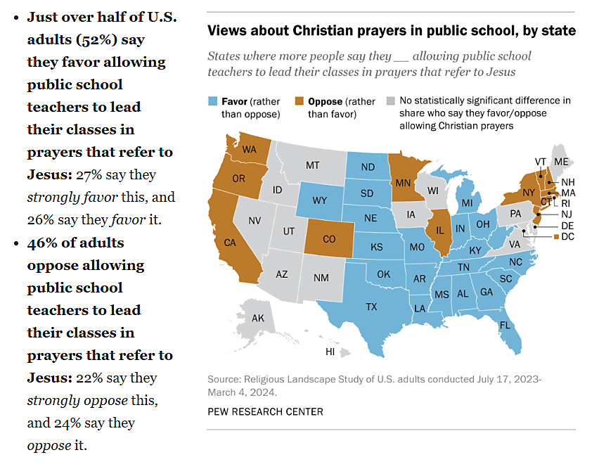Pew finds majority supports teacher-led Christian prayer in public schools
